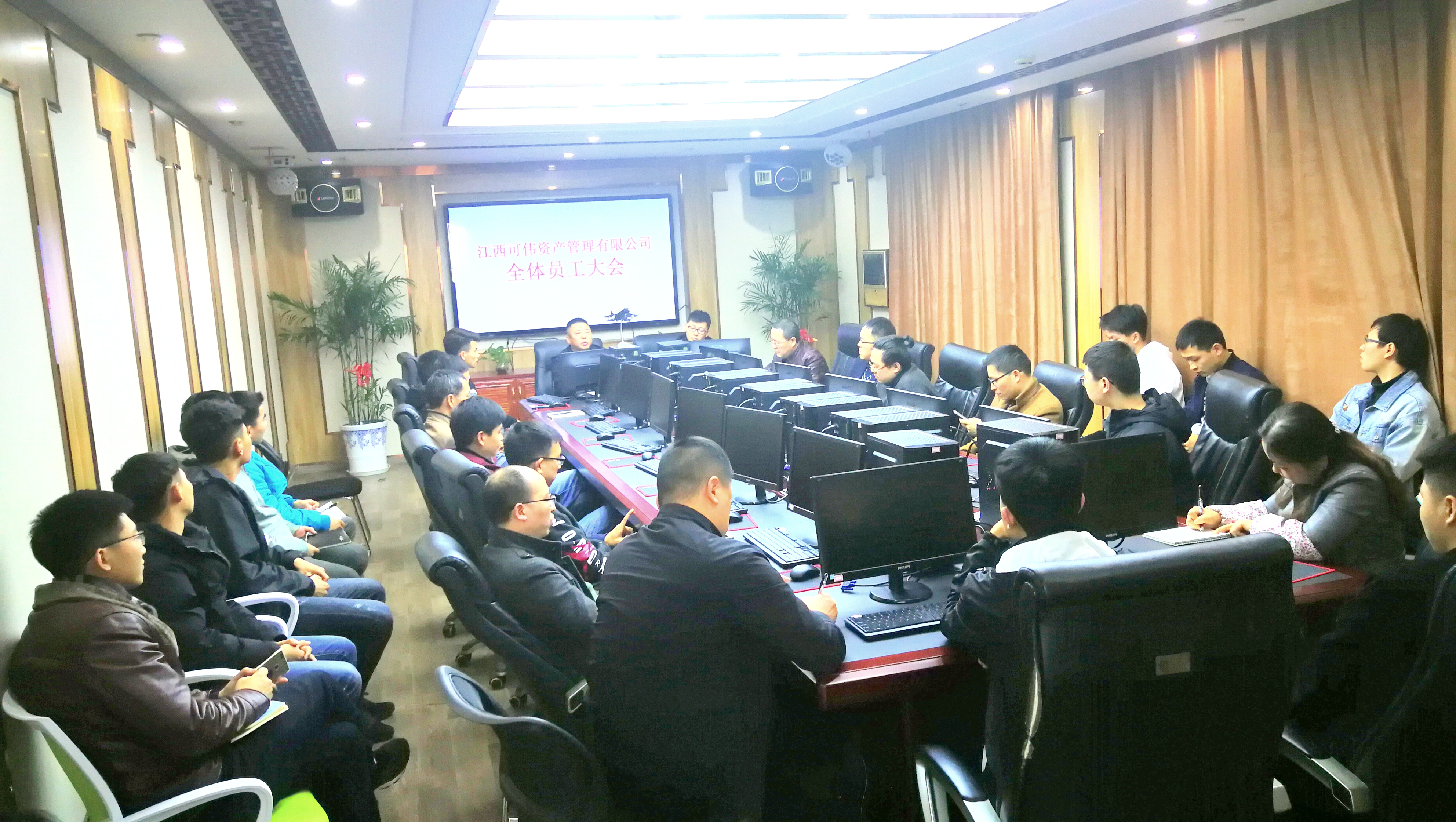 阳春三月,万象更新。2019年3月14日下午,江西可伟资产管理有限公司会议室洋溢着暖暖的春意,公司全体员工大会在这里隆重召开。